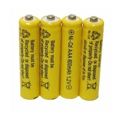 Baterai AAA Ni-Cd kapasitas 600mAh 1,2V. Cocok untuk elektronik, mainan, mouse, remote, kamera digital, RC, telepon tanpa kabel, radio, lampu emergency, DVD portabel, alat medis, dll.