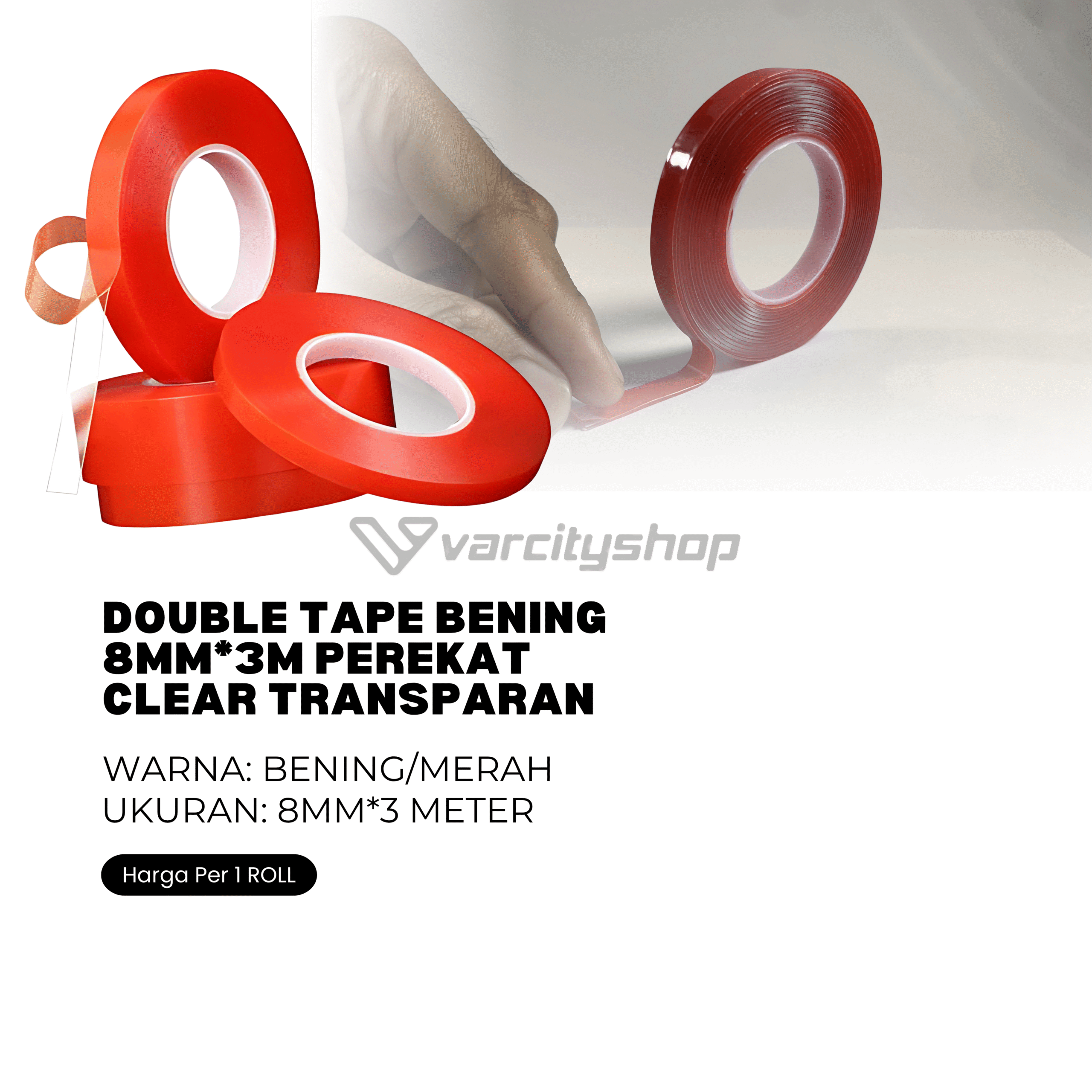 Double Tape Bening 8MM*3M Perekat 0.8CM Clear Transparan Dobel Tip – Kulit Merah