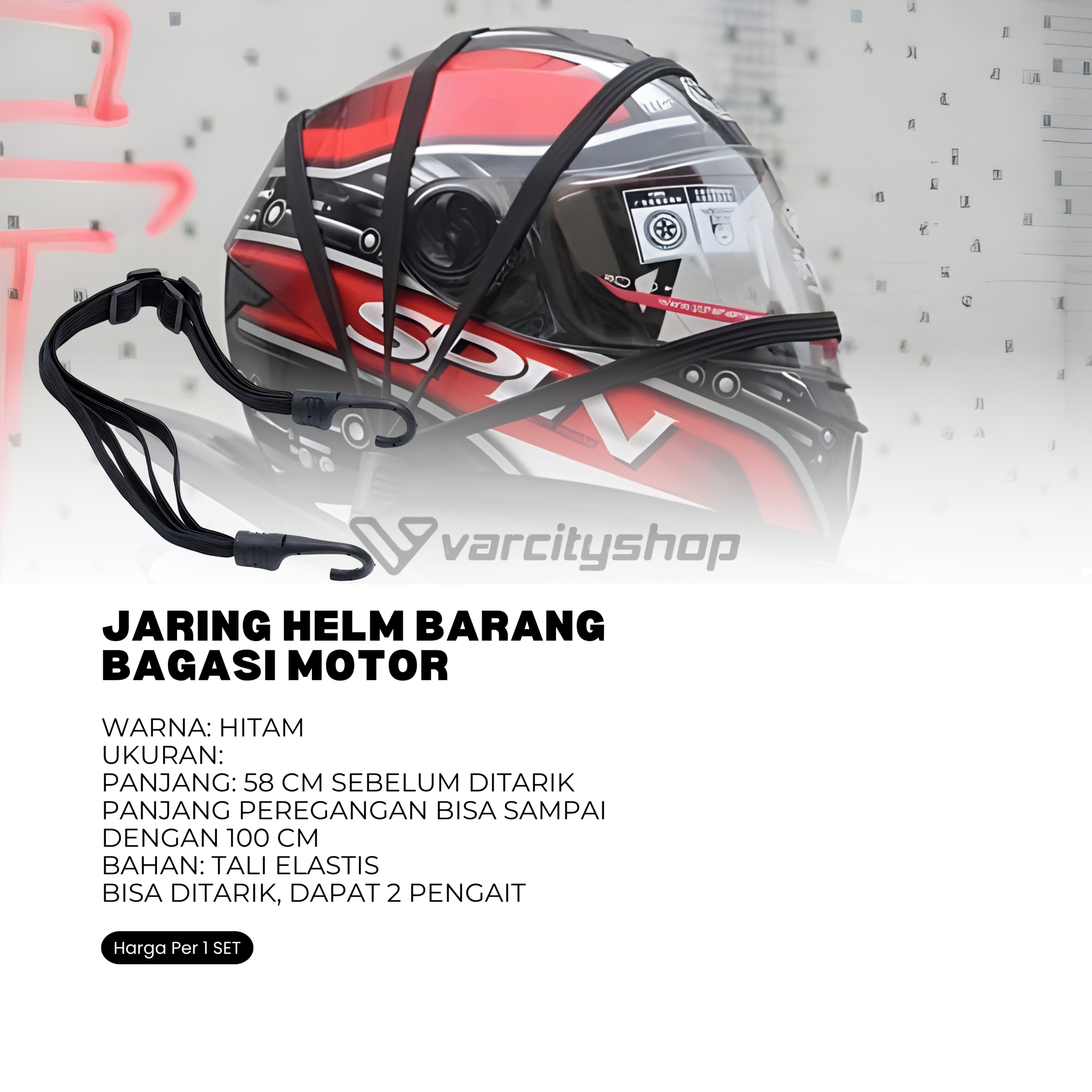 Cocok untuk semua jenis helm dan motor. Elastis, Dapat Ditarik, Desain 2 Kait