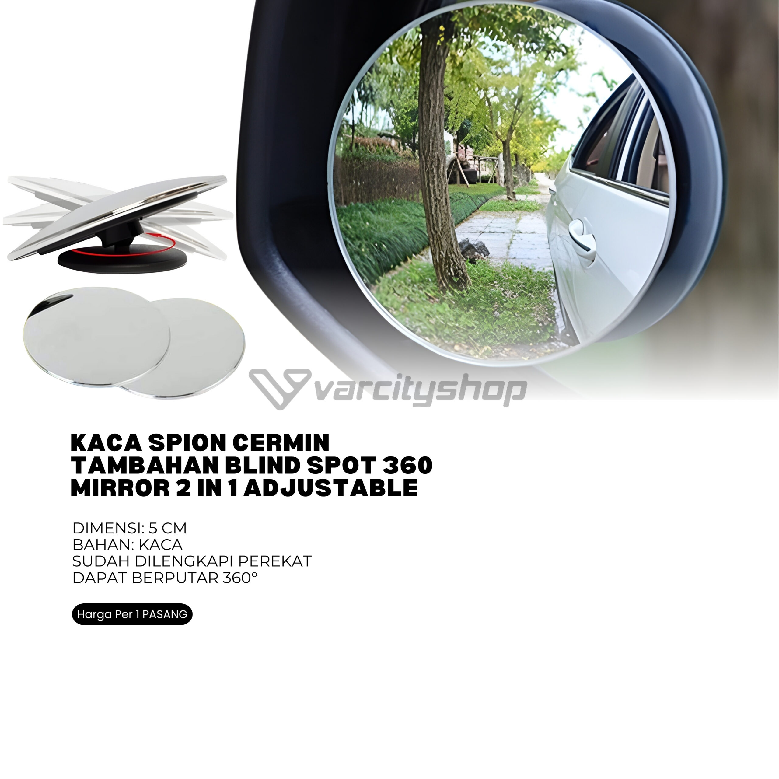Menariknya, setelah Anda tempel pada spion, kaca wide angle ini bisa anda putar atau rotasi 360 derajat, agar sesuai dengan kenyamanan Anda.