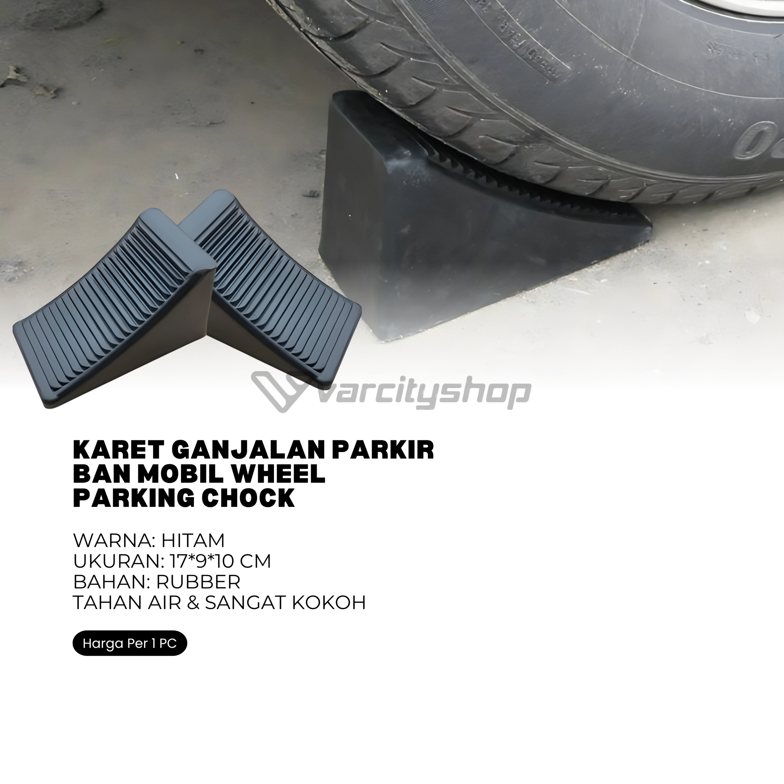 Wajib punya untuk mengganjal ban mobil pada saat parkir dirumah. Bahan karet dengen material yang kokoh dan anti slip. Ukuran mini sehingga Mudah dibawa kemana-mana. Sangat praktis.