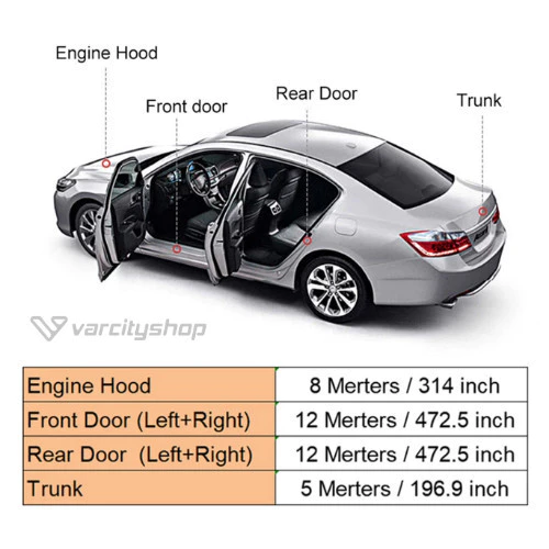 Jawab: 4 pintu butuh 8 meter, kap mesin 2 meter dan bagasi 2 meter, total 12 meter (minimal). Silahkan lihat foto produk untuk kebutuhan karet dan bisa disesuaikan dengan kebutuhan Anda