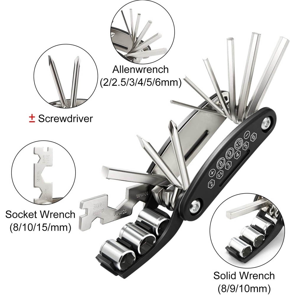 16 fungsi dalam satu sepeda perbaikan alat kit.