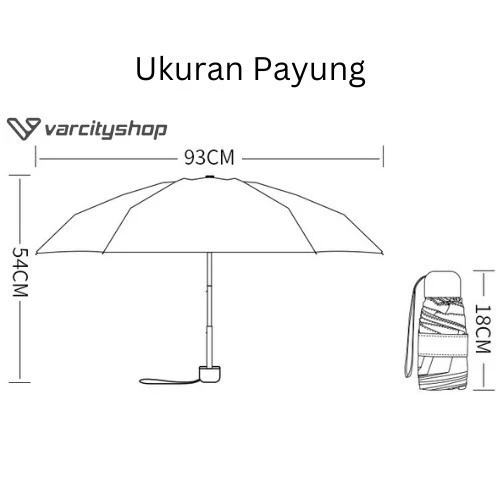 Ukuran dimensi terbuka : Diameter 93cm dan tinggi 56cm berat 140gram