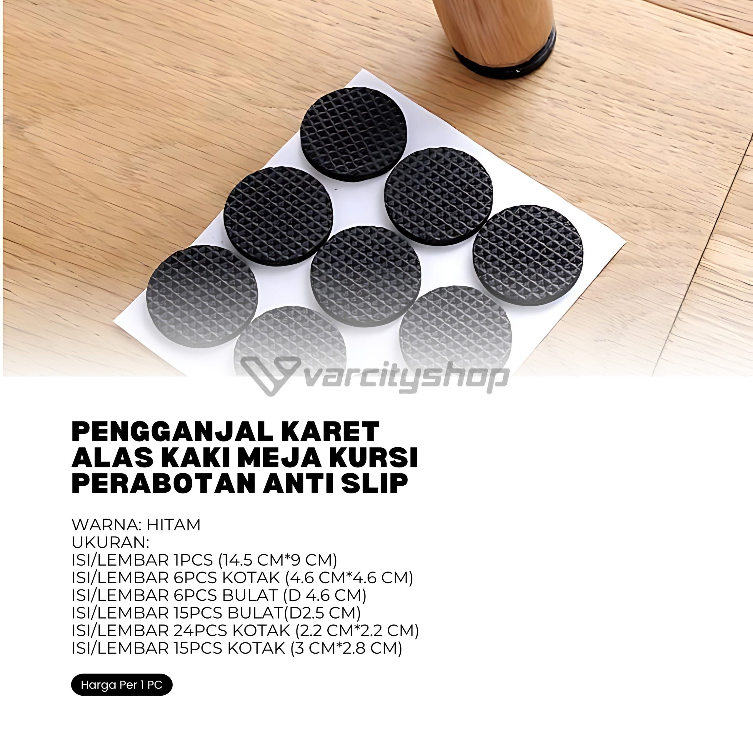 Pengganjal karet untuk kaki meja / kursi agar tidak menyebabkan lecet pada lantai, dan sekaligus mengurangi kemungkinan jatuhnya kursi / meja secara tidak sengaja. Tambahan pengganjal ini akan menjaga perabot dan lantai Anda pada saat bersamaan..