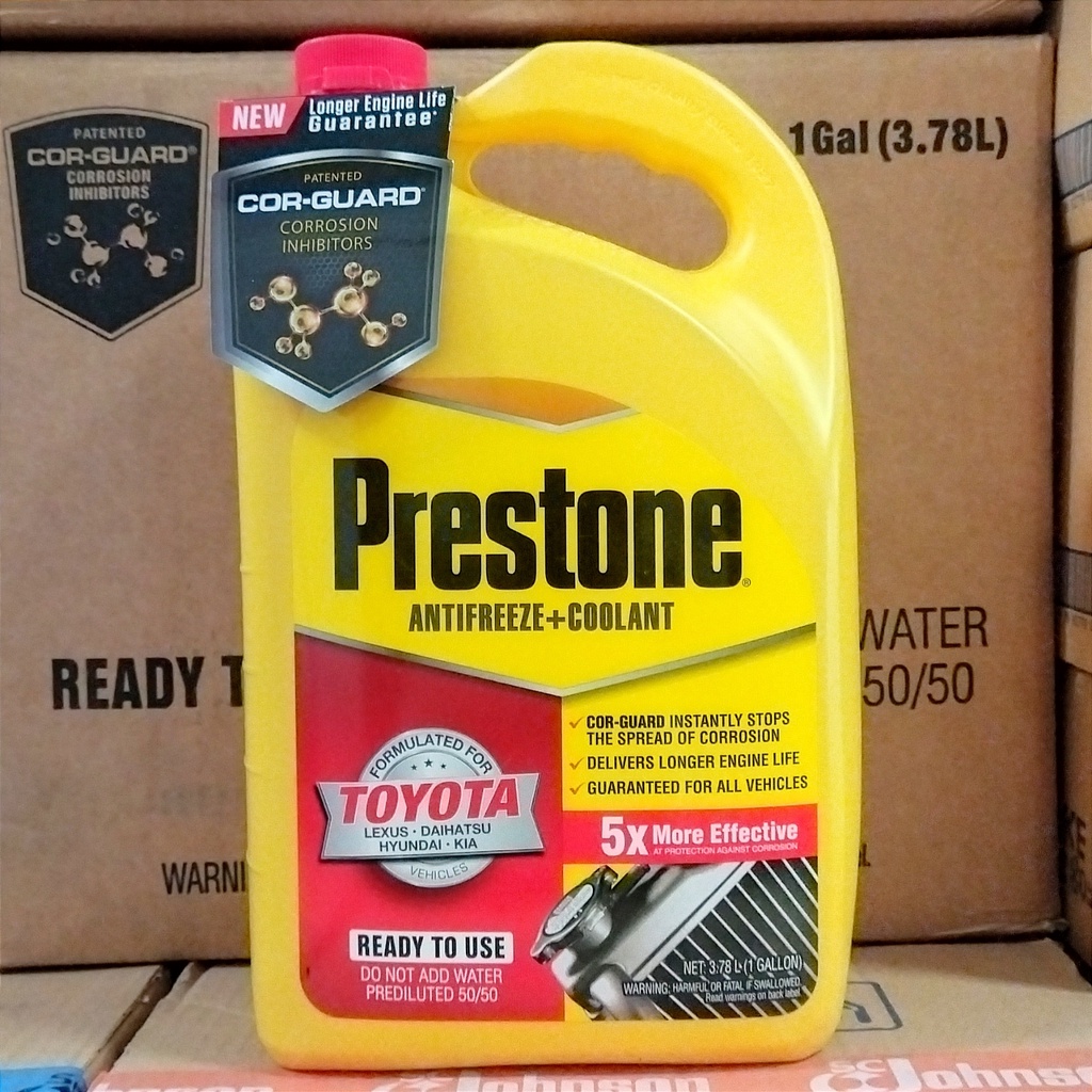 Kelengkapan : 1 galon Prestone 100% ORI 50/50 Cor-Guard Asian Coolant 3.78L