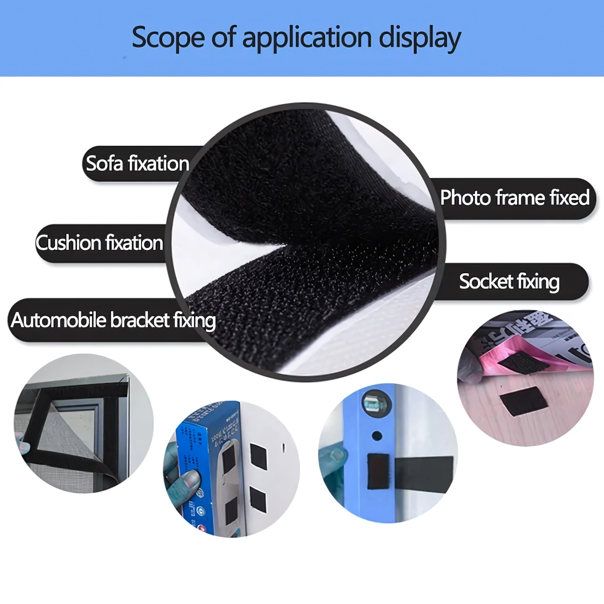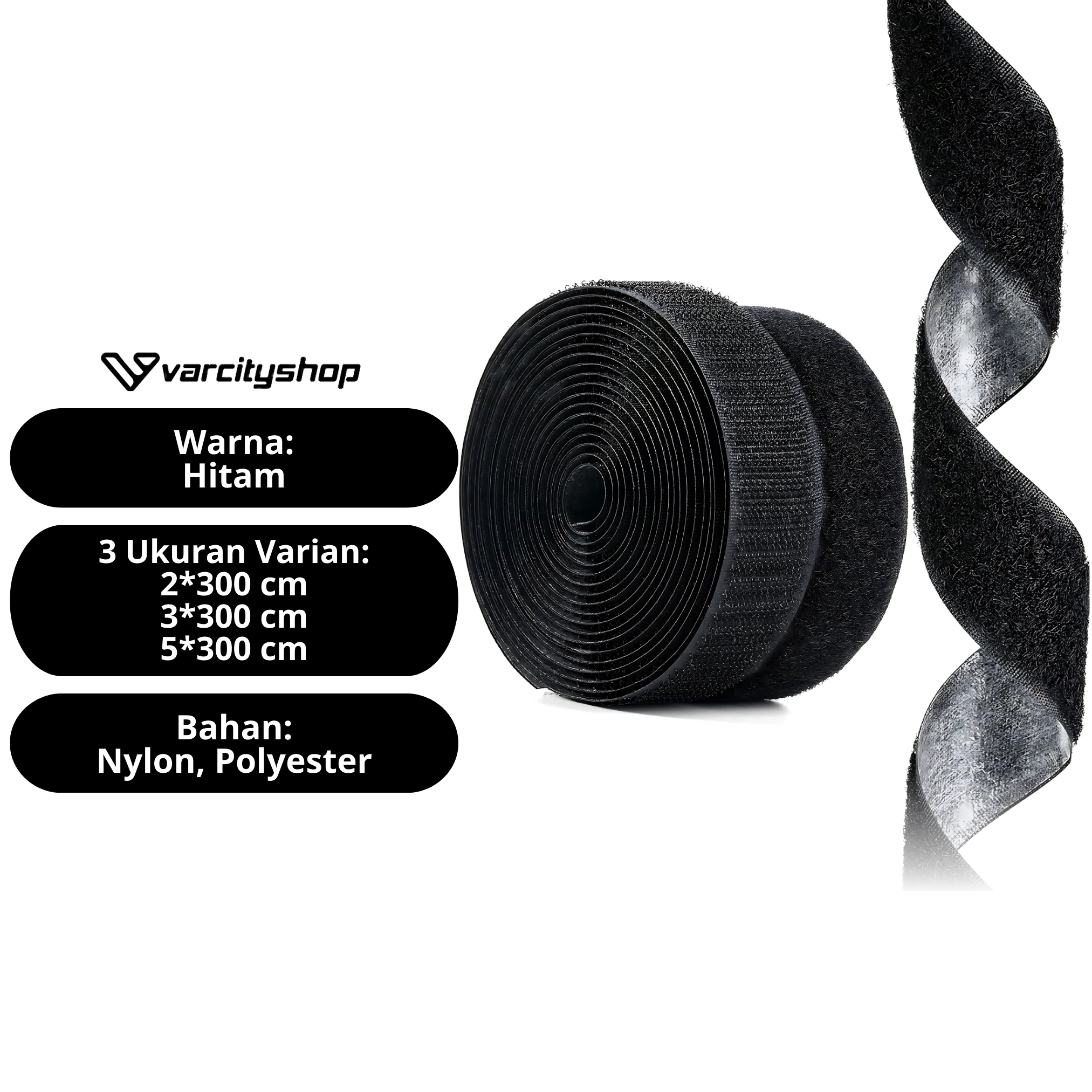 Setiap pembelian mendapatkan sepasang bagian halus (loop) dan kasar (hook) sudah dilengkapi dengan double tape