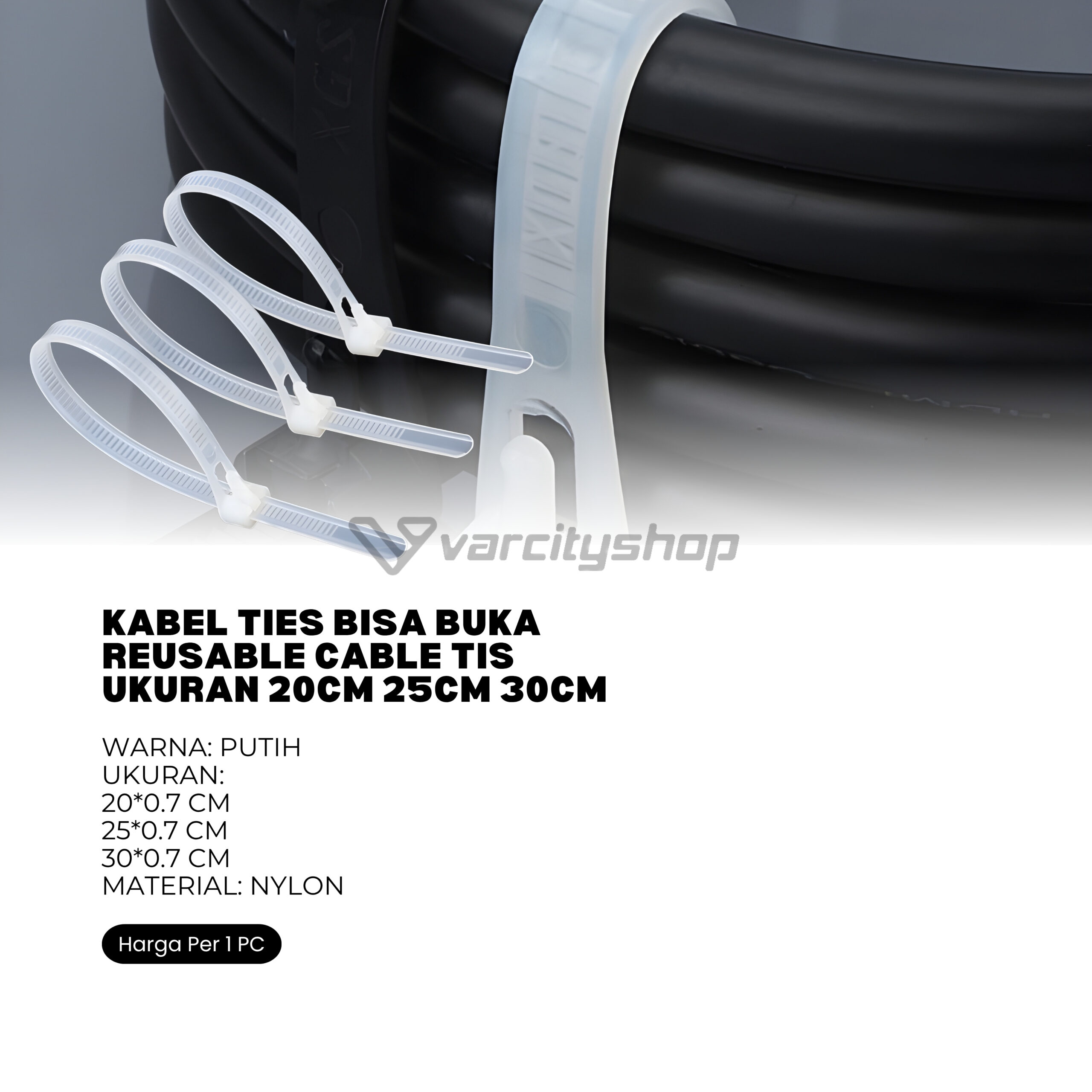 Kabel ties terbuat dari nilon yang fleksibe dan dapat ditekuk serta tidak mudah putus apabila ditarik.