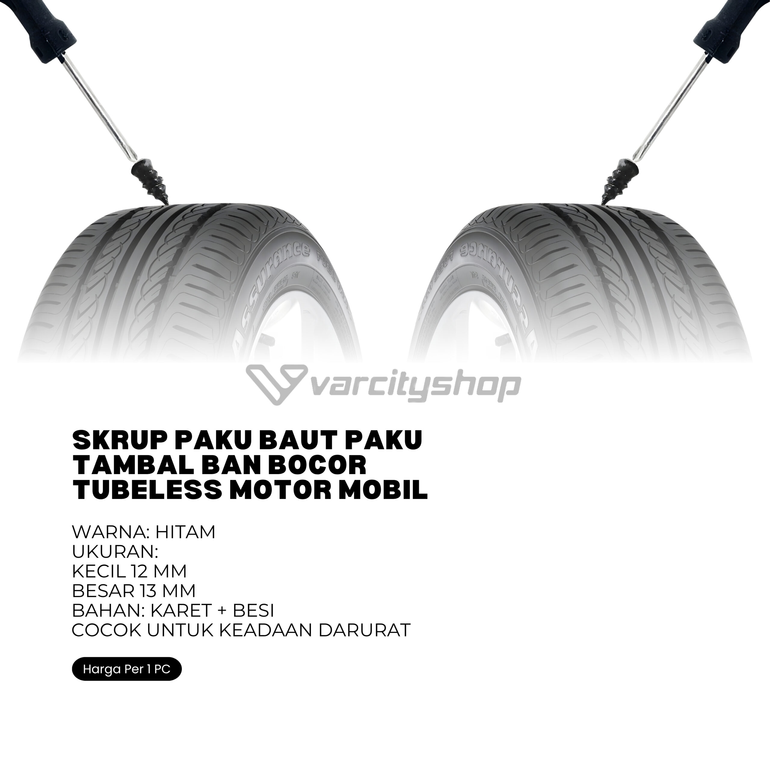 Karet ini berguna untuk menambal ban mobil, sepeda dan motor. Anda dapat dengan mudah menambal ban sendiri dengan memasukkan karet ini ke bagian ban yang bocor. Cara memasukkannya pun gampang cukup menggunakan obeng.